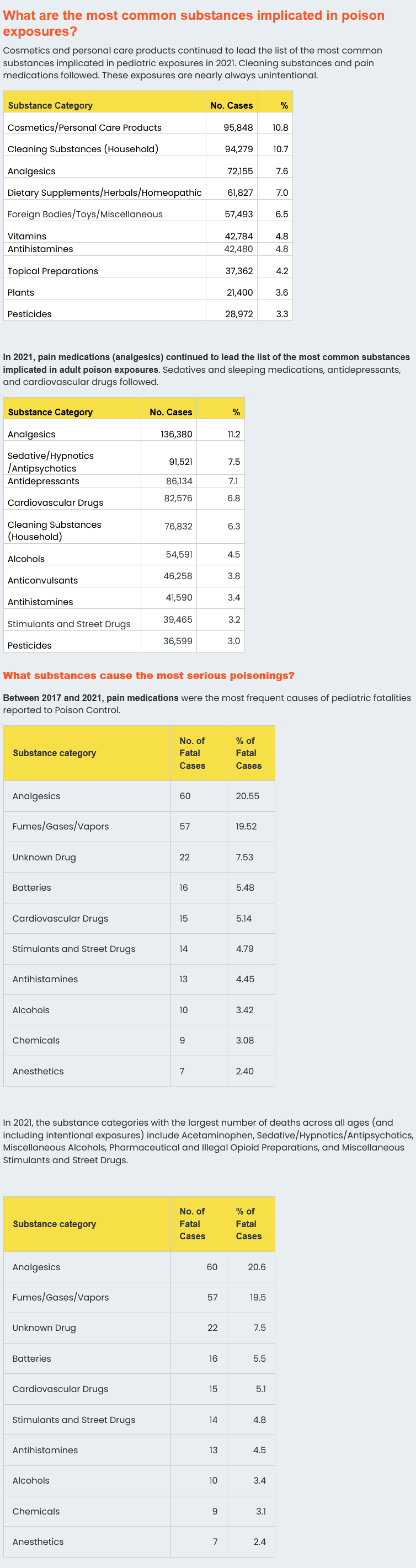 U.S. National Poison Control Call Statistics, 2021 (in the interest of context)