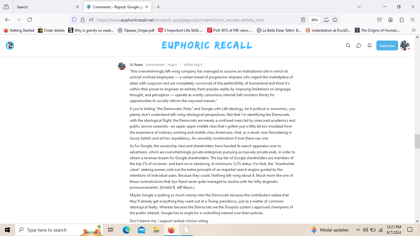 If you're eliding "the Democratic Party" and Google with Left ideology, be it political or economic, you plainly don't understand left-wing ideological perspectives. Not that I'm identifying the Democrats with the ideological Right; the Democrats are merely a confused mess led by sinecured academics and public service careerists--an upper upper middle class that's gotten just a little bit too insulated from the experience of ordinary working and middle class Americans. And, as a result, now floundering in luxury beliefs and ad hoc expediency. An unwieldy combination if ever there was one.